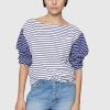 Rebecca Minkoff Women’s Ruby Stripe Pocket Tee | Small Twilight & Large White Stripe