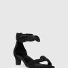 This sandal combines playful charm and everyday wearability. Designed with a soft ruched knot on the upper and a sleek kitten heel, this ankle strap style features a back zipper for easy on-and-off wear.